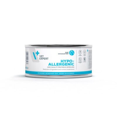 VetExpert 4T Hypoallergenic – puszka dla kota – pełnoporcjowa i zbilansowana karma dietetyczna dla kotów dorosłych, przeznaczona do wspomagania przy nietolerancji składników pokarmowych i substancji odżywczych.