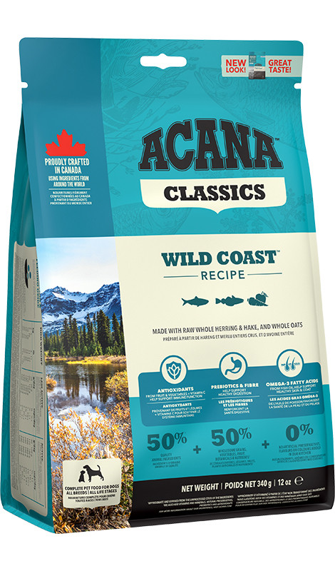 Acana Classics Wild Coast to najbardziej klasyczna z karm tej marki. Oparta o mięso 3 gatunków ryb, bez glutenu, ziemniaków i tapioki stanowi świetną dietę zdrowego i sprawnego psa