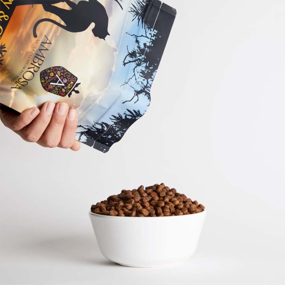 Ambrosia łączy strawne białko ze świeżych ryb z wysoko odżywczym białkiem mięsnym oraz dodatkiem warzyw, superfoods i ziół. W rezultacie formuły karm są pożywieniem holistycznym, bogatym w tłuszcze Omega-3 i Omega-6 oraz przeciwutleniacze. W wyniku idealnego połączenia świeżego, suszonego i hydrolizowanego mięsa lub ryby, produkty pozwalają utrzymać maksymalne wchłanianie składników odżywczych z pożywienia, czyniąc je zarówno strawnym jak i smacznym.