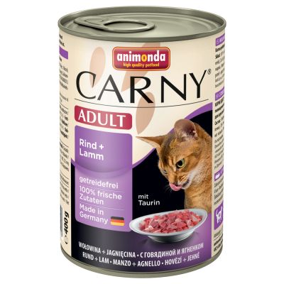 Animonda Carny to pełnoporcjowy posiłek, który ma w składzie dużą zawartość wysokiej jakości mięsa. Wszystkie składniki są staranne dobrane i wyselekcjonowane. W puszkach Animonda dla kota nie ma sztucznych konserwantów, barwników, glutenu ani soi. Dzięki temu, że skład karmy jest jasny i klarowny masz pewność, co podajesz swojemu Kotu. W tym posiłku znajdują się całe kawałki mięsa, takie jak mięso mięśniowe, płuca, serca, wątroba. Ten rodzaj karmy dostarcza Kotu niezbędnych składników, takich jak witaminy, przeciwutleniacze, sole mineralne. Występuje w wielu wariantach smakowych.