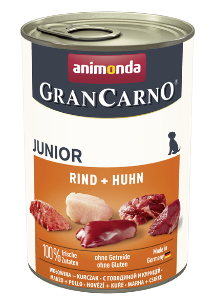 Animonda GranCarno Junior Wołowina i Kurczak – to pełnoporcjowa karma przeznaczona dla szczeniąt.