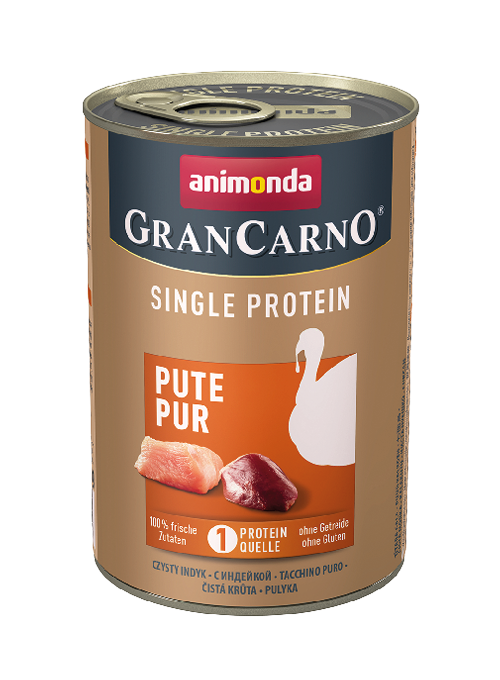 Animonda GranCarno Single Protein Indyk – przystosowana do żywienia dorosłych psów między 1-6 rokiem życia. Karm zawiera tylko jedno źródło białka. Szczególnie istotne jest to dla zwierząt cierpiących na nietolerancje i alergie pokarmowe. Co ważne, skład karmy jest jasny i klarowny, znajdują się w niej całe kawałki mięsa: bardzo cenne mięso mięśniowe, płuca, serca, wątroba. Animonda zapewnia wszystkie niezbędne składniki, takie jak witaminy, przeciwutleniacze, sole mineralne. Dodatkowo produkt jest pozbawiony wszelkich sztucznych dodatków i konserwantów i stanowi pełnowartościowy, zdrowy posiłek. Również brak zbóż, soi i cukrów wpływa na jakość produktu.