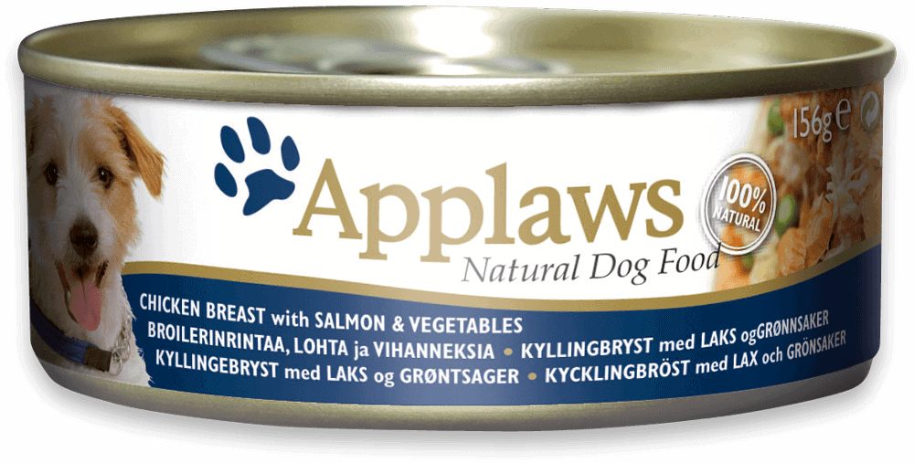 Jednym z produktów marki, jest mokra karma dla psów Applaws Dog – Pierś z Kurczaka z Łososiem i Warzywami. Z pewnością jest ona dobrym rozwiązaniem dla wszystkich psów dorosłych. Ponieważ kompozycja karmy opiera się w 42% o mięso z kurczaka i łososia stanowi ona odpowiedni pełnoporcjowy pokarm dla psa. Skład karmy przekłada się na 13% zawartość surowego białka i 0,3% tłuszczu w karmie.