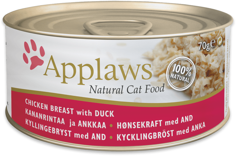 Karma dla kota Applaws – Kurczak Kaczka – 70g puszka jest w 100% naturalną, uzupełniającą karmą dla dorosłych kotów