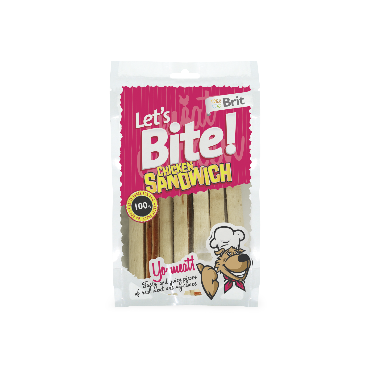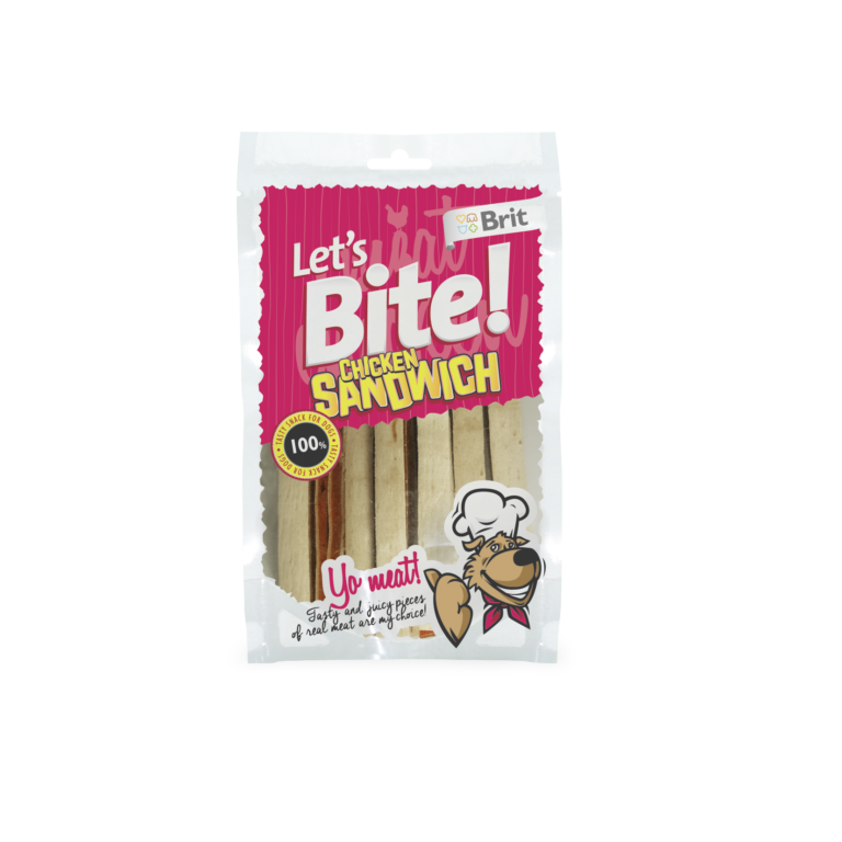Brit Let’s Bite Chicken Sandwich to przysmaki w formie paseczków. Będą smakowały wszystkim psom uwielbiającym smak drobiu. Można je podawać w postaci pojedynczych pasków, bądź podzielić na mniejsze części.