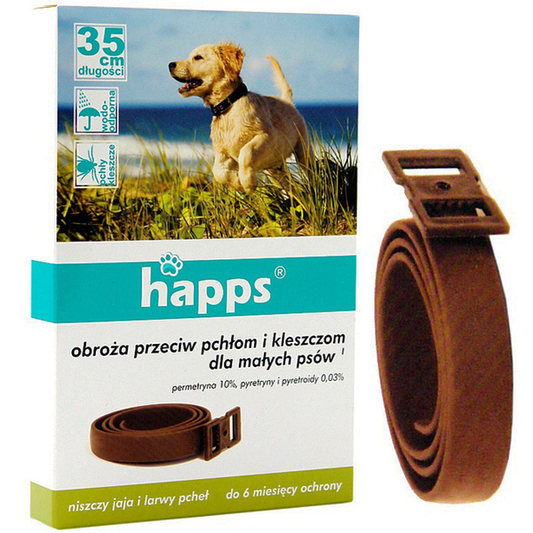Bros Happs 35cm to wodoodporna obroża przeciwko pchłom i kleszczom dla małych psów.