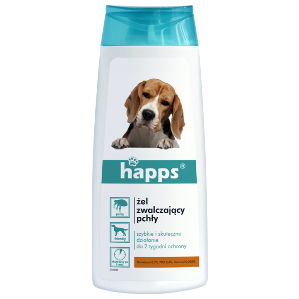 Bros Happs Żel to nowoczesny, wieloskładnikowy żel myjący do zwalczania inwazji pcheł u psów.