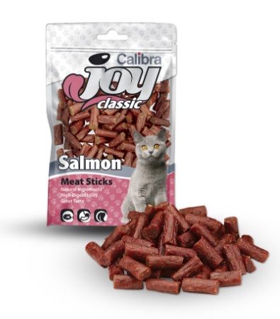 Calibra Joy Cat Classic Salmon Sticks to zdrowa i dodatkowo bardzo smaczna przekąska w formie niedużych paluszków z łososia. Wygodna forma podania, aromat i zawierający kwasy Omega łosoś, tak w skrócie można opisać Calibra Sticks. Pyszna łososiowa przekąska zawiera nienasycone kwasy tłuszczowe, niezbędne dla zdrowej skóry i sierści.