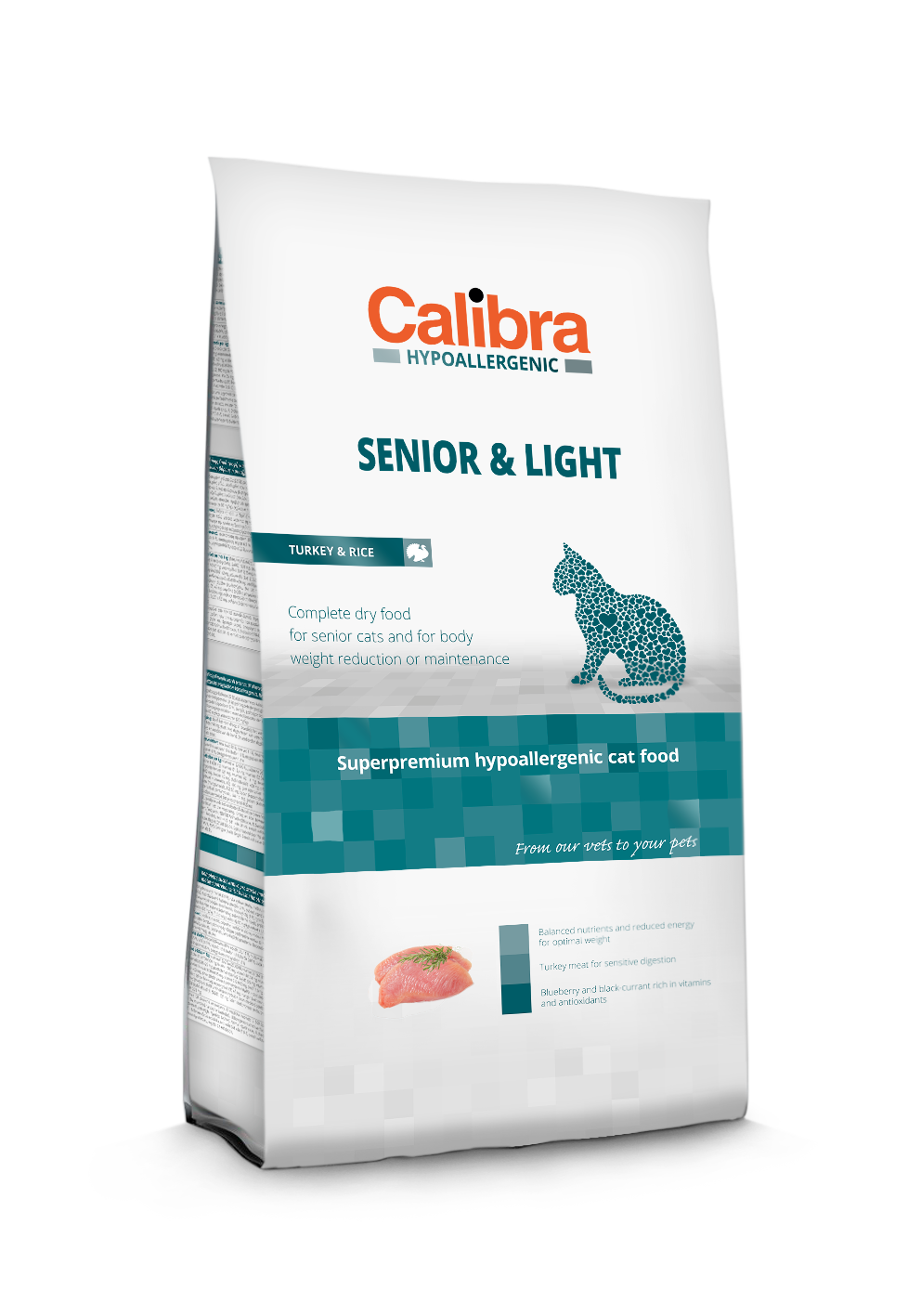 Calibra Senior & Light – Indyk & Ryż – sucha karma dla kota, to produkt czeskiego producenta. Marka Calibra od 2001 roku tworzy produkty dla zwierząt. Jest efektem wspólnej pracy entuzjastów lekarzy weterynarii. Dlatego założeniem producenta jest promowanie zdrowego i długiego życia zwierząt towarzyszących. W związku z tym skoordynowana współpraca między zespołami składającymi się ze specjalistów ds. żywienia i zdrowia zwierząt, diagnostyki laboratoryjnej, weterynarzy z praktycznym doświadczeniem, technologów i specjalistów produkcji pozwala tworzyć karmy, które spełniają wszelkie potrzeby żywieniowe. Także długofalowa współpraca wiodących specjalistów z uniwersytetów weterynaryjnych w Wiedniu i Berlinie lub instytutów laboratoryjnych i rozwojowych w Republice Czeskiej pozwala tworzyć doskonale zbilansowane formuły dostosowane do każdego etapu życia zwierząt.