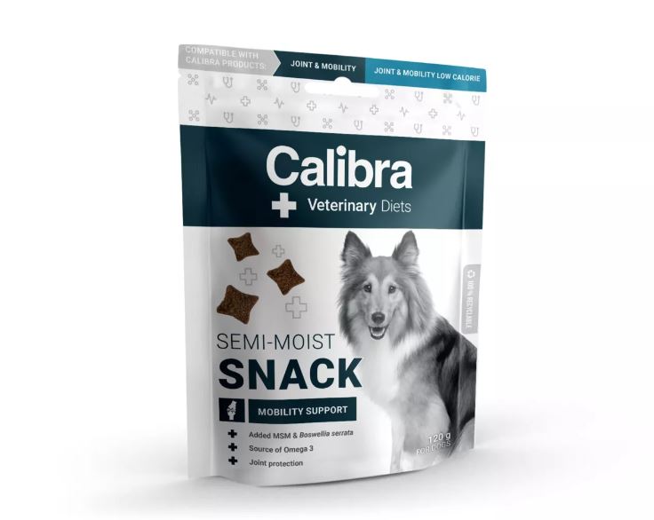 Calibra VD Dog Snack Mobility Support to kompatybilne z weterynaryjną dietą przysmaki dla dorosłych psów z zaburzeniami ruchowymi, wymagającymi wsparcia dla stawów i kontroli wagi. Unikalny skład i parametry pokrywają się z wymaganiami diety weterynaryjnej i nie osłabiają efektu terapeutycznego leczenia. Świeże mięso ryb zapewnia doskonały smak. Nagradzaj swojego psa bez zmartwień.
