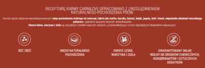 - wzbogacona o składniki naturalnie konsumowane przez wilka i dzikiego psa