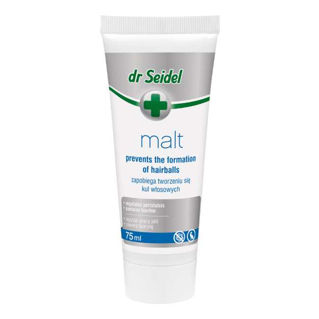 Dermapharm Malt Pasta to pasta odkłaczająca dla kota, zawierająca składniki, które ułatwiają pozbycie się zalegających w układzie pokarmowym kul włosowych. Pasta jest suplementem, który może być stosowany doraźnie i profilaktycznie. Wysoce smakowita i łatwa w podaniu.