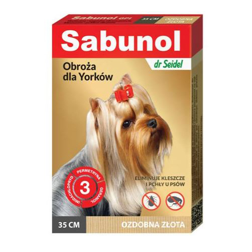 Dermapharm Sabunol GPI Złota 35cm to ozdobna obroża przeciwko pchłom i kleszczom w kolorze złotym. Dedykowana rasie Yorkshire terrier, odpowiednia dla wszystkich psów, o podobnej do Yorka wielkości. Ta nowoczesna, skuteczna i wygodna w użyciu obroża zapewnia ochronę przed nową infestacją dorosłymi postaciami pcheł oraz ochronę przed kleszczami przez okres 3 miesięcy.