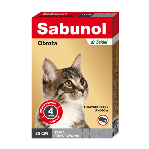 Dermapharm Sabunol Kot Szara 35cm to skuteczna obroża przeciwko pchłom w kolorze szarym.