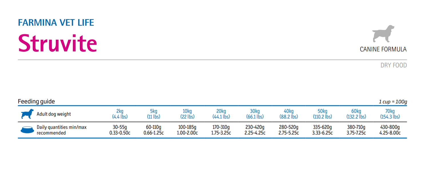 Karmy marki Farmina mają już ponad 40letnią tradycje, która przekłada się na bogate doświadczenie i znajomość potrzeb czworonogów na całym świecie. Produkowane przy współpracy włoskiej Russo Feed i angielskiej Farmina Pet Foods oferują 10 linii produktowych: 5 dla psów i 5 dla kotów. Szeroka oferta ma zapewniać realizację zróżnicowanych potrzeb, które wynikają z rasy, wielkości czy stylu życia. Bardzo ważne jest też że karmy marki Farmina Vet Life są przygotowane po to aby oferować Twojemu psu dietę weterynaryjną, która jest jak najbliżej naturalnej. Wolne od GMO, wykorzystują jedynie prazboża takie jak orkisz i owies, co pozwoliło uzyskać niższy indeks glikemiczny. W karmach tych, także w oferowanej Farmina Vet Life – Struvite, wykorzystywane są tylko naturalne przeciwutleniacze, a naturalne utrwalanie produktu jest możliwe dzięki ekstraktom bogatym w takoferole. Całość posiłku jest tak skomponowana, aby połączyć potrzeby psa i doskonały smak. Dzięki temu Farmina oferuje odpowiednią dietę dla Twojego ukochanego psa.