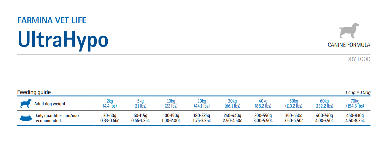 Farmina Vet Life UltraHypo Canine Formula to lekkostrawna, pełnoporcjowa sucha karma dla psów, które chorują na alergie pokarmowe oraz atopie skórne. Dzięki jednemu źródłu białka, jest sprawdzonym narzędzie diagnostycznym w diecie eliminacyjnej. Szczególnie wskazana u psów opornych na leczenie atopowego zapalenia skóry i z nawracającymi biegunkami