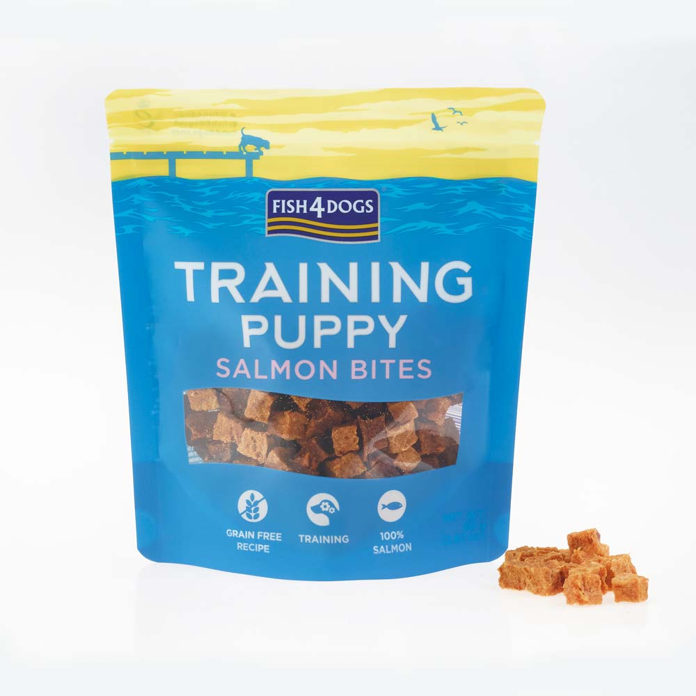 Fish4Dogs Puppy Salmon Bites – przysmaki treningowe dla szczeniąt. Zdrowe, w 100% naturalne. Aromatyczne i smaczne, pomagają w nauce i szkoleniu.