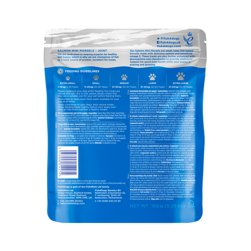 Fish4Dogs Puppy Salmon Morsels na stawy- zdrowy i smaczny suplement diety dla szczeniąt. Bogaty w dobroczynne składniki, które wspomagają zdrowy rozwój stawów. Jest dodakwo smaczną przekąską, którą psy uwielbiają.