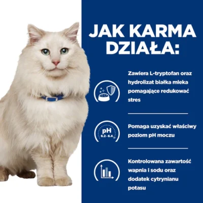 Karma przeznaczona dla dorosłych kotów z chorobami ze strony układu moczowego, które często występują na skutek stresu. Zawiera wszystkie potrzebne witaminy, składniki mineralne oraz kwasy tłuszczowe. Odznacza się dużą smakowitością.