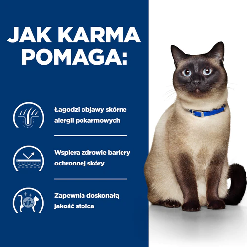 Hill’s PS Z/D powstała z myślą o kotach, które ukończyły 1 rok życia i występuje u nich nietolerancja pokarmowa i związane z nią dolegliwości, takie jak problemy skórne czy gastryczne. Białko w karmie jest hydrolizowane. Dzięki temu znacznie zmniejsza się jego potencjał alergenny. Karma zawiera wszelkie dodatki, które wspierają skórę i sierść kota oraz utrzymują go w dobrej kondycji.