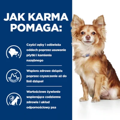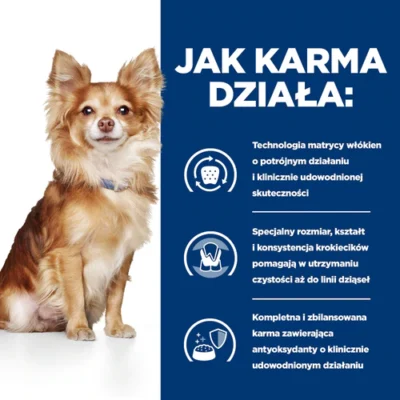 Sucha karma weterynaryjna dla dorosłych psów małych ras z problemami stomatologicznymi.