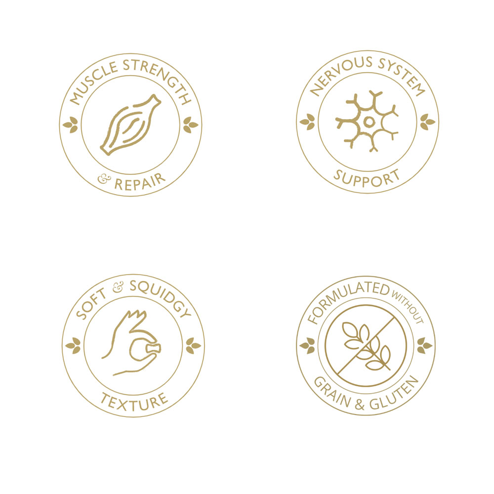 Przewód pokarmowy – prebiotyki tworzące przyjazne środowisko dla zdrowych bakterii jelitowych. Wszystko to sprawia, że karma jest świetnie przyswajana i sprawdza się również u psów z wrażliwym żołądkiem. Niski indeks glikemiczny batatów eliminuje gwałtowne skoki cukru we krwi i zapewnia na dłużej poczucie sytości.