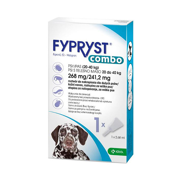 Krka Fypryst Combo L to środek przeciw pchłom i kleszczom, dla psów o wadze od 20kg do 40kg.
