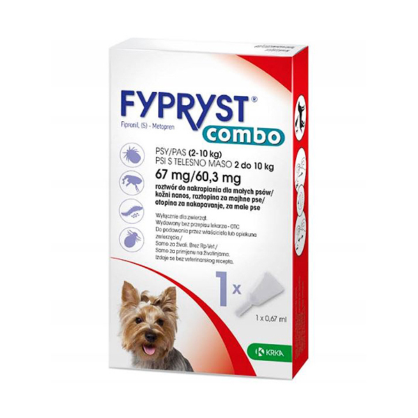 Krka Fypryst Combo S to środek przeciw pchłom i kleszczom, dla psów o wadze od 2kg do 10kg.