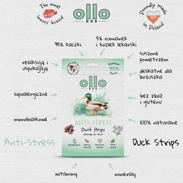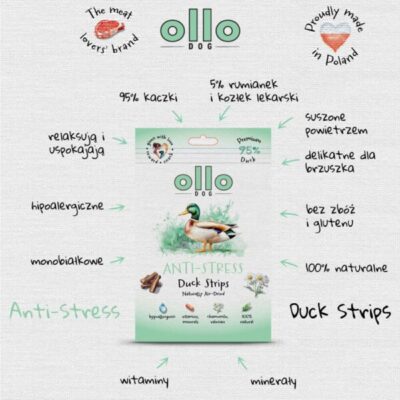 Ollo Air Dried Anti-Stress Duck Strips – przysmaki funkcyjne dla psa