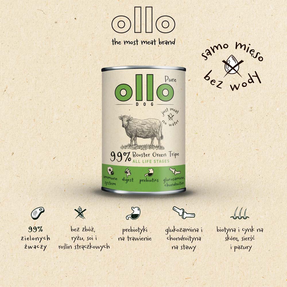 Ollo Booster Zielone Żwacze – mokra karma dla psa z zielonych żwaczy