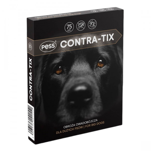 Pess Contra-Tix 75cm to obroża przeciw kleszczom dla dużych psów. Ta skuteczna obroża zapewnia ochronę przed przed kleszczami przez okres 4 tygodni. Obroża zaczyna działać natychmiast po założeniu. Jest całkowicie odporna na działanie wilgoci.