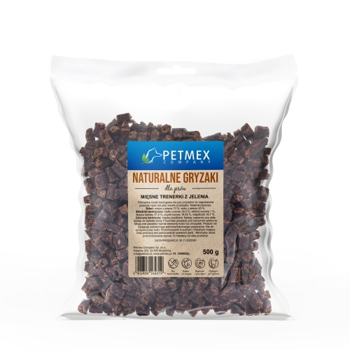 Trenerki mięsne z jelenia, które znaleźć możecie w naszej ofercie, pochodzą od polskiej firmy Petmex Company. Bez wątpienia na uwagę zasługuje fakt, że firma ta wywodzi się z rodzinnej działalności zakładów mięsnych. Dzięki temu proces produkcji opiera się o wieloletnie doświadczenie, zespół specjalistów i najnowsze technologie. W rezultacie gryzaki, które trafiają do misek naszych pupili są zdrową, pyszną i bezpieczną przekąską naszych czworonogów.