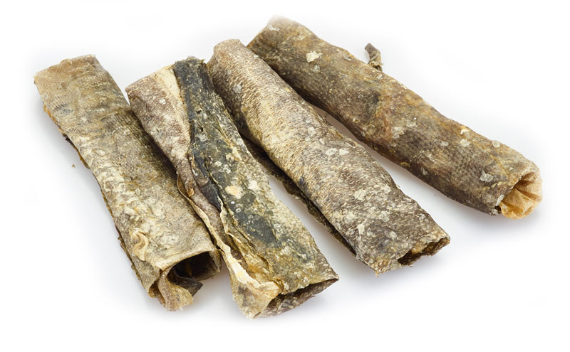 Przysmaki również są pożywieniem. Wychodząc z tego założenia marka Fish4Dogs dba o to aby wszystko co dajemy naszym zwierzętom do jedzenia było maksymalnie zdrowe. Cała linia przysmaków Sea Jerky w tym również Sea Jerky Strips jest zrobiona z pieczonych rybich skór. Przysmaki są twarde, ale kruche i o chropowatej teksturze. Dzięki temu doskonale pomagają w usuwaniu kamienia nazębnego. W związku z tym, że skóra ryby, to jedyny składnik tego produktu są też dietetyczne i lekkostrawne.