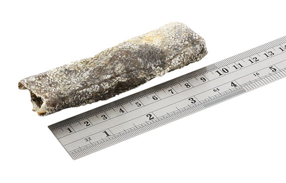 Wymiary: Sea Jerky Fish Strips to paski rybiej skóry, idealne do trzymania w łapach, o orientacyjnej długości 100mm i szerokości 30mm.