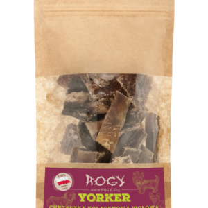 ROGY – Yorker chrząstka kolagenowa wołowa to doskonały przysmak dla małych psów, bez względu na wiek. Suszone ciepłym powietrzem, bez konserwantów są doskonałą nagrodą dla psiaka podczas ćwiczeń, bez znaczenia czy robisz to zawodowo czy hobbystycznie