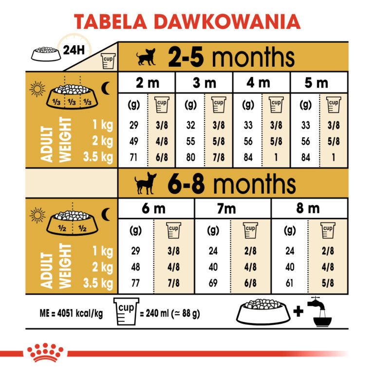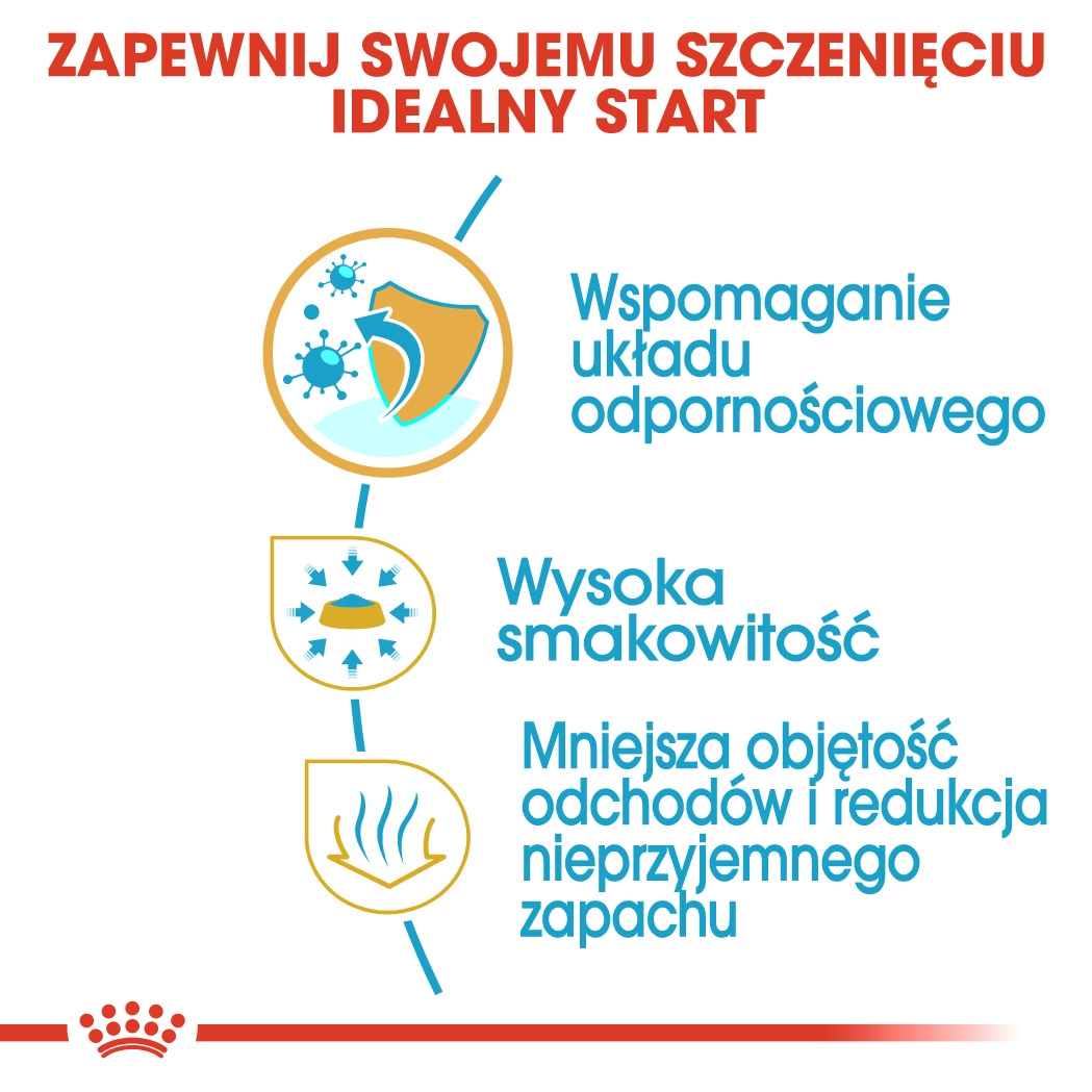 Karma ROYAL CANIN® Chihuahua Puppy została opracowana specjalnie dla szczeniąt do 8 miesiąca życia, rasy chihuahua. Karma zawiera opatentowany kompleks współdziałających przeciwutleniaczy, w tym witaminę E, który sprzyja rozwijaniu się naturalnych sił odpornościowych u szczeniąt.