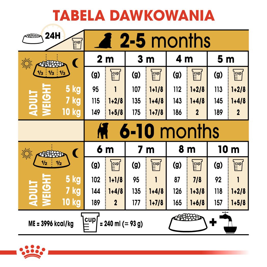 Karma ROYAL CANIN® Jack Russell Puppy została opracowana specjalnie dla szczeniąt rasy jack russell, do 10 miesiąca życia. Karma zawiera także opatentowany kompleks współdziałających przeciwutleniaczy, w tym witaminę E. Kompleks sprzyja wzmocnieniu naturalnych mechanizmów obronnych szczenięcia.