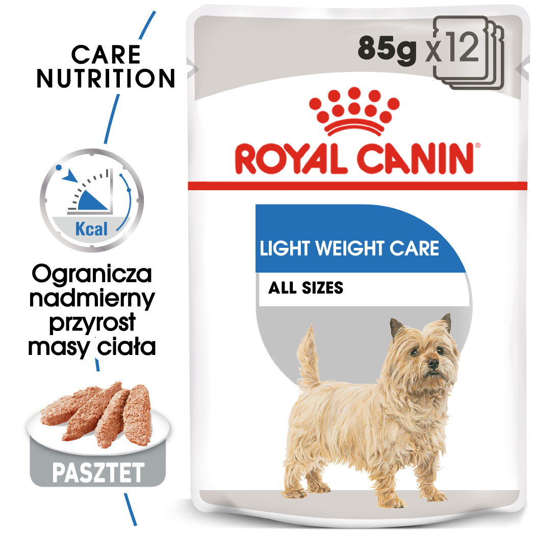RC Light Weight Care  jest karmą pełnoporcjową, przeznaczoną dla dorosłych psów ze skłonnością do nadwagi.  W związku z tym, formuła posiada specjalnie dobrane składniki, które pomagają utrzymać prawidłową masę ciała. Receptura posiada optymalny poziom białka. Dzięki temu pomaga utrzymać masę mięśniową. Natomiast obniżony poziom tłuszczu obniża wartość kaloryczną pożywienia. Dodatkowo odpowiedni bilans włókna rozpuszczalnego i nierozpuszczalnego zapewnia poczucie sytości oraz wspomaga prawidłowy pasaż jelitowy. Karma jest wzbogacona o kwasy Omega 3 (EPA i DHA). Dzięki temu wykazuje działanie przeciwzapalne i wspomaga stawy.