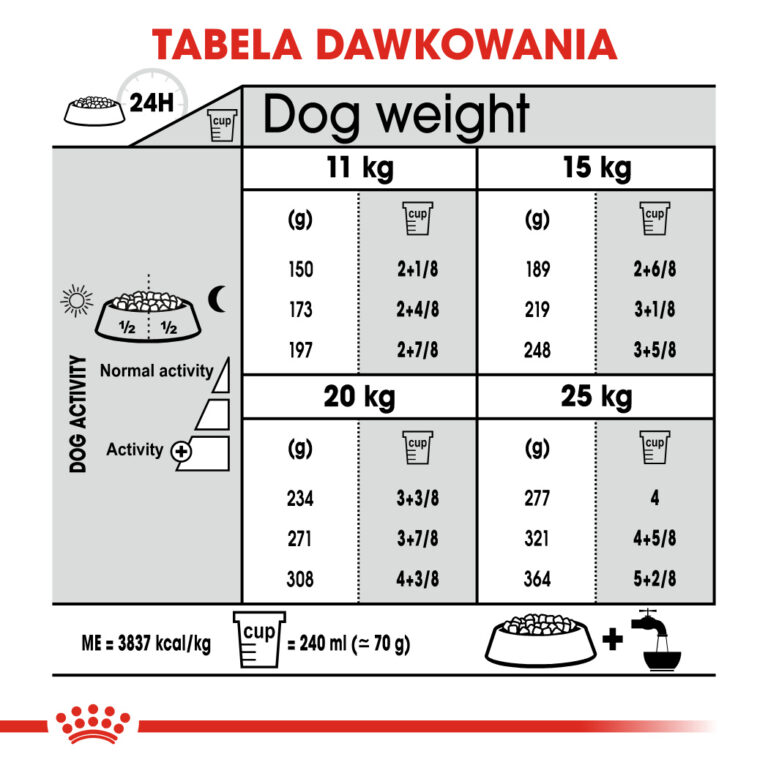 Jest odpowiednia dla psów o masie ciała między 11 a 25 kg. Unikalna receptura kompletnej karmy o wysokiej smakowitości dodatkowo chroni zęby Twojego psa.
