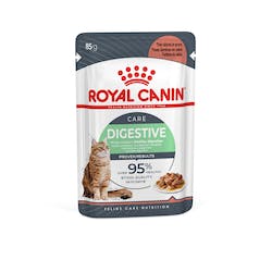 Royal Canin Digest Sensitive w formie kawałków w smakowitym sosie, została opracowana specjalnie dla kotów o wrażliwym przewodzie pokarmowym i charakteryzuje się wysoką strawnością oraz specjalnie wyselekcjonowanymi składnikami sprzyjającymi redukcji zapachu odchodów.