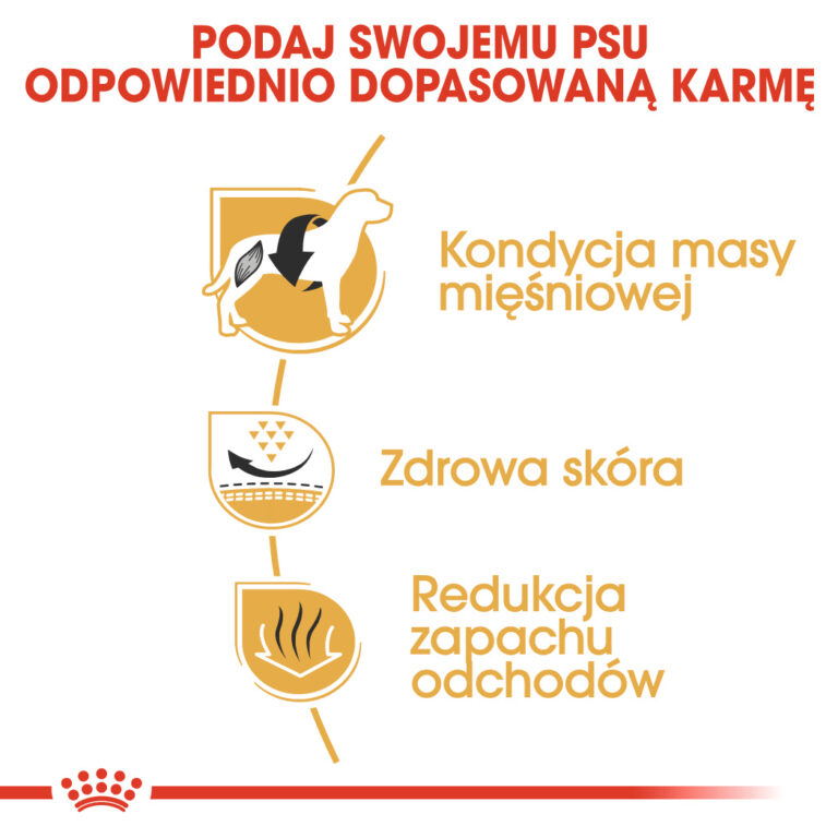 Karma  Royal Canin French Bulldog została opracowany zgodnie z potrzebami charakterystycznymi dla rasy bulldog francuski.Odpowiednio zbilansowana karma gwarantuje prawidłowy rozwój oraz sprzyja wzmocnieniu nieprzepuszczalności bariery skórnej. Karma zawiera wysokiej jakości białko (L.I.P.), wyselekcjonowane ze względu na bardzo wysoką przyswajalność. Zawiera także prebiotyki, korzystanie wpływające na organizm. Połączenie tych składników sprzyja zdrowiu układu pokarmowego.