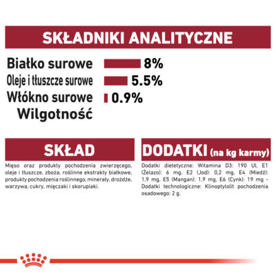 Karma mokra ROYAL CANIN® Medium Ageing 10+ w sosie została opracowana specjalnie dla dorosłych psów ras średnich, o masie 11-25 kg, powyżej 10 roku życia. Zawiera unikalny kompleks przeciwutleniaczy, który chroni przed działaniem wolnych rodników. Natomiast kwasy tłuszczowe EPA i DHA, zawarte w karmie ROYAL CANIN® Medium Ageing 10+, sprzyjają zdrowiu kości i stawów psów starszych. Ponadto karma zawiera specjalne substancje odżywcze wpływające na utrzymanie zdrowej skóry i lśniącej sierści.
