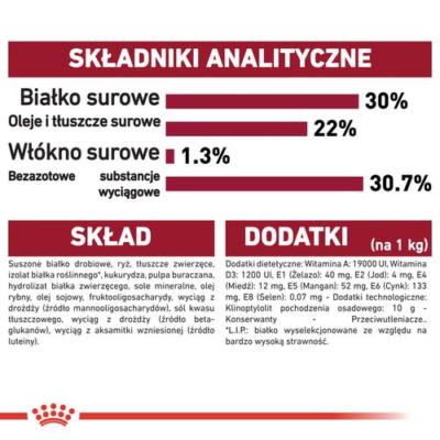 • dostosowana do zwiększonych potrzeb pokarmowych suk w ostatnim etapie ciąży oraz w laktacji