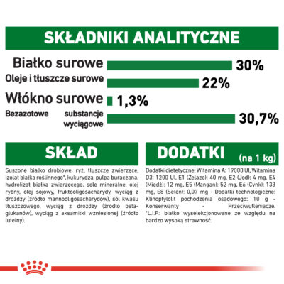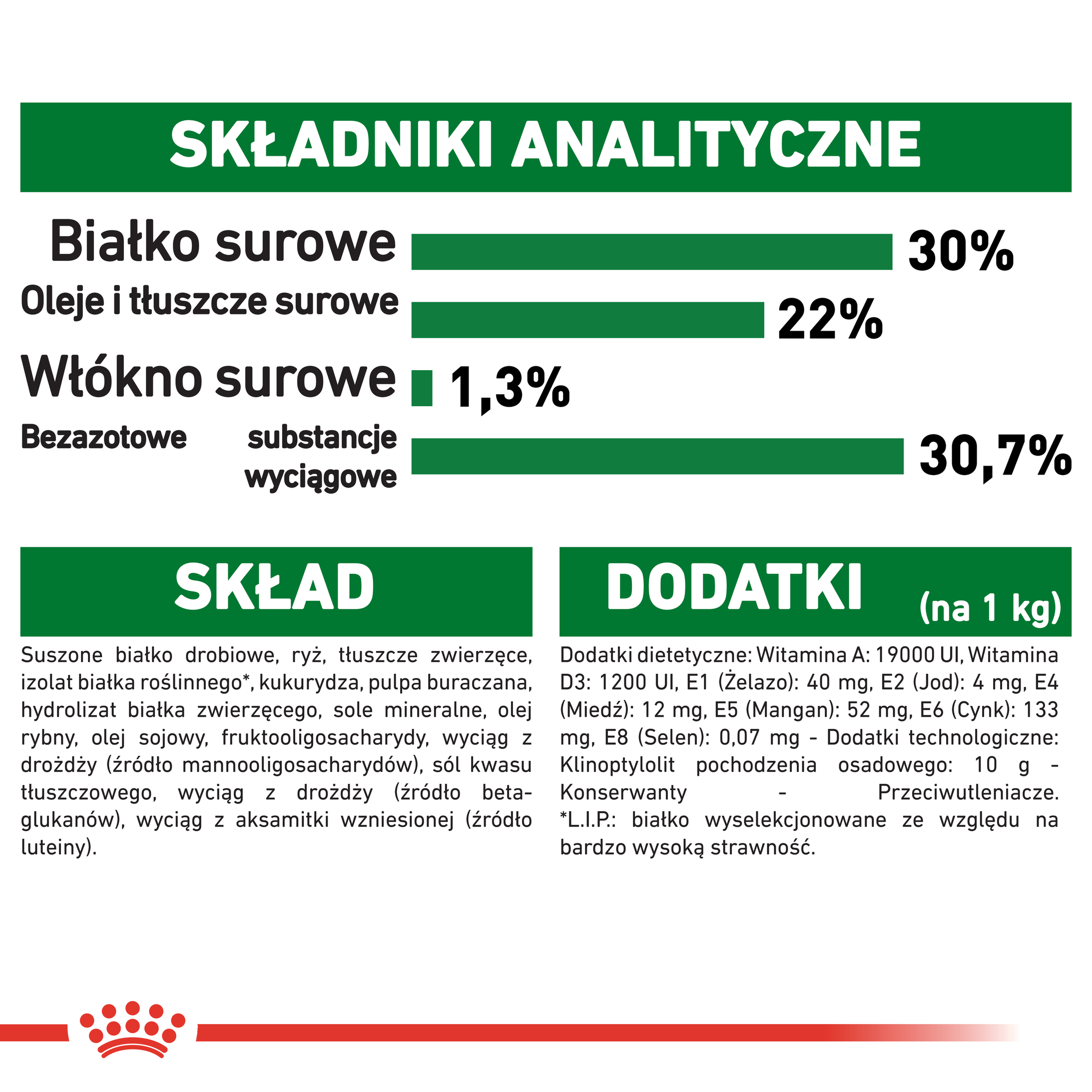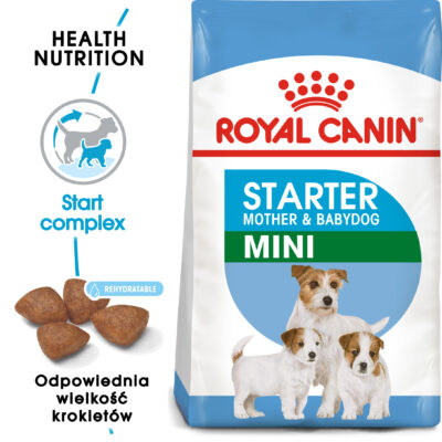 Karma ROYAL CANIN® Mini Starter Mother & Babydog pokrywa potrzeby suk w ciąży i okresie laktacji ras małych (do 10 kg) oraz szczeniąt ras małych,w okresie odsadzenia, do 2 miesiąca życia. Zastosowany w karmie „Start Complex”, to unikalny kompleks składników pokarmowych naturalnie występujących w mleku matki, wzbogacony o substancje chroniące wrażliwy układ pokarmowy szczeniąt. Karma pokrywa wysokie zapotrzebowanie energetyczne suk na ostatnim etapie ciąży oraz w okresie laktacji. Tekstura krokietów dostosowana jest do potrzeb szczeniąt w okresie przechodzenia z pokarmu płynnego (mleko matki) na stały, a także pobudza apetyt suk. Krokiety o wysokiej smakowitości, łatwo ulegające namoczeniu do konsystencji delikatnej papki.