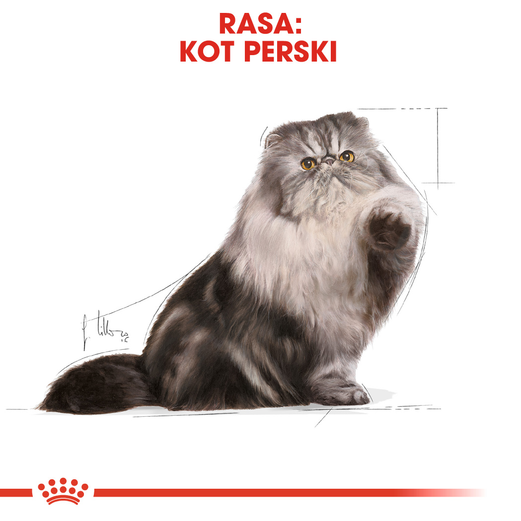 Koty perskie to koty średniej wielkości, jednak z powodu niezwykle gęstej sierści wydają się dużo większe. Oprócz stosowania karmy mokrej ROYAL CANIN® Persian Adult, koty perskie wymagają codziennej pielęgnacji sierści.