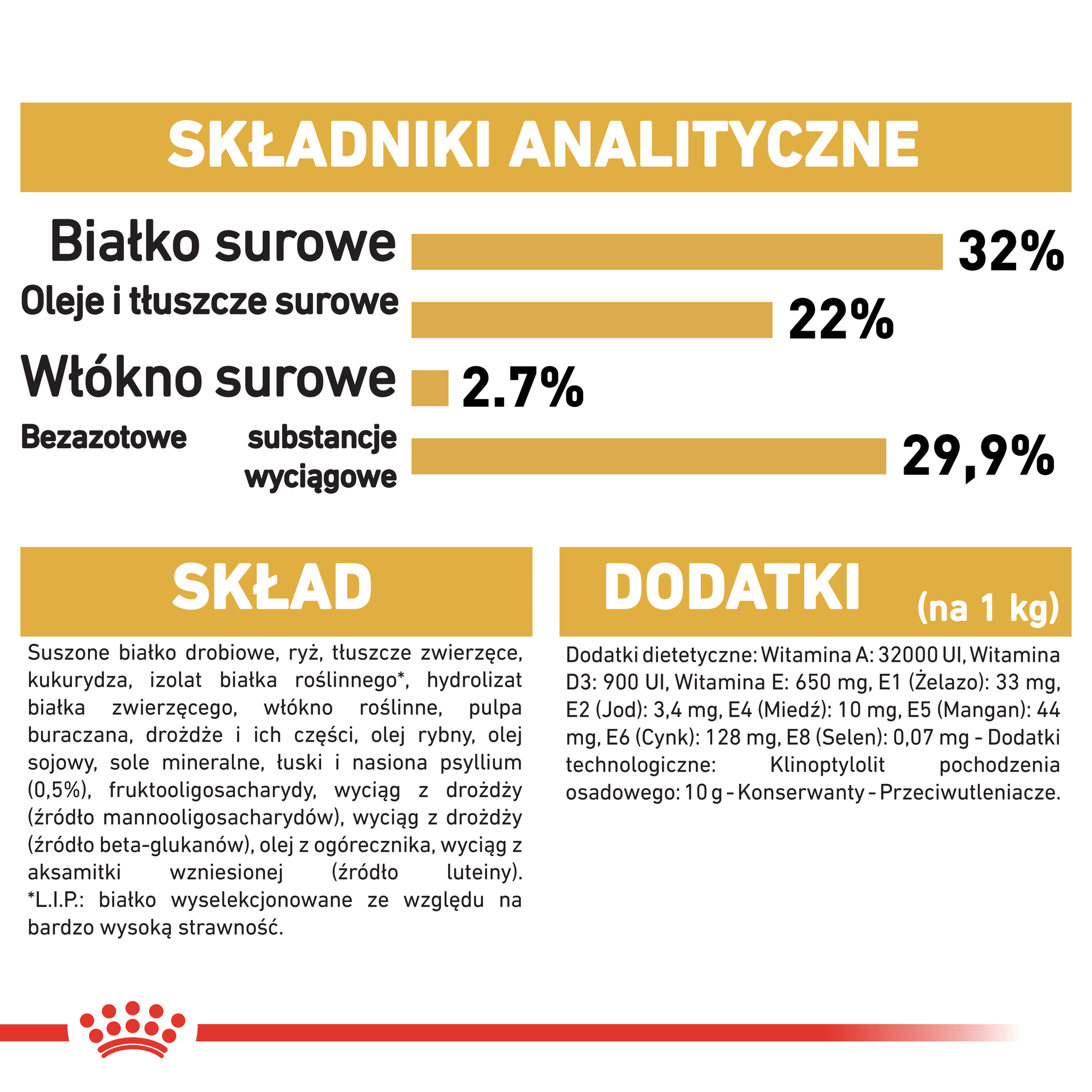 ROYAL CANIN® Persian Kitten to karma opracowana specjalnie dla kociąt perskich. Rozwiązanie żywieniowe dostosowane do potrzeb kociąt daje lepszy start w dorosłe życie. Układ pokarmowy kociąt rozwija się stopniowo w czasie okresu wzrostu. Karma ROYAL CANIN® Persian Kitten zawiera białka o najwyższej jakości i strawności. Charakteryzuje się także dostosowanym poziomem włókna pokarmowego (w tym psyllium) oraz dodatkiem prebiotyków, które sprzyjają równowadze flory bakteryjnej jelit.