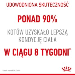 Receptura charakteryzuje się obniżoną kalorycznością aż o 19%. Dzięki temu pozwala utrzymać kota w odpowiedniej kondycji zapewniając jednocześnie wszystkie niezbędne składniki pokarmowe. Karma zawiera optymalny poziom białka. W związku z tym pozwala na zachowanie prawidłowej masy mięśniowej pomimo obniżenia podaży kalorii. Dodatkowo formuła została wzbogacona o o L-karnitynę, która sprzyja lepszemu wykorzystaniu rezerw tłuszczowych. Karma wspiera również prawidłowe funkcjonowanie układu moczowego.