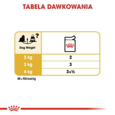 Mając na uwadze preferencje żywieniowe psów, karma ROYAL CANIN® Yorkshire Terrier jest dostępna także w formie suchej, w postaci smakowitych krokietów. W przypadku żywienia karmą mokrą i suchą należy zapoznać się z tabelą dawkowania, aby dobrać odpowiednią porcję poszczególnych karm.