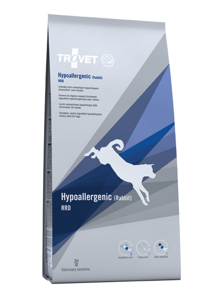 Trovet Hypoallergenic RRD z Królikiem – sucha karma dla psa. Holenderska marka Trovet została wprowadzona na rynek pod koniec lat 80 – tych. Bez wątpienia tak ogromne doświadczenie w wytwarzaniu żywności dla zwierząt pozawala tworzyć produkty specjalistyczne i dostosowane do potrzeb organizmu na każdym etapie życia. Z pewnością, wieloletnia wiedza na temat żywienia, pozwala stale aktualizować produkty w oparciu o najnowsze badania w tej dziedzinie. Również każda nowa, wprowadzana przez markę karma, to produkt innowacyjny, spełniający standardy najnowszej dostępnej wiedzy z zakresu żywienia. Przede wszystkim, specjalizacją marki jest produkcja diet leczniczych, które wspomagają zwierzęta w walce z różnego typu schorzeniami. W związku z tym produkty spełniają wysokie standardy jakości, nie zawierają sztucznych barwników i konserwantów. Dlatego często stają się ważnym składnikiem skutecznej terapii.