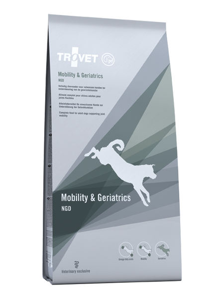 Trovet Mobility & Geriatrics MGD – sucha karma dla psa. Holenderska marka Trovet została wprowadzona na rynek pod koniec lat 80 – tych. Bez wątpienia tak ogromne doświadczenie w wytwarzaniu żywności dla zwierząt pozawala tworzyć produkty specjalistyczne i dostosowane do potrzeb organizmu na każdym etapie życia. Z pewnością, wieloletnia wiedza na temat żywienia, pozwala stale aktualizować produkty w oparciu o najnowsze badania w tej dziedzinie. Również każda nowa, wprowadzana przez markę karma, to produkt innowacyjny, spełniający standardy najnowszej dostępnej wiedzy z zakresu żywienia. Przede wszystkim, specjalizacją marki jest produkcja diet leczniczych, które wspomagają zwierzęta w walce z różnego typu schorzeniami. W związku z tym produkty spełniają wysokie standardy jakości, nie zawierają sztucznych barwników i konserwantów. Dlatego często stają się ważnym składnikiem skutecznej terapii.